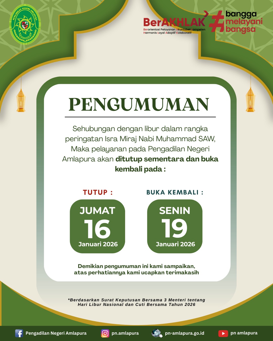 Ketua Mahkamah Agung RI pada tanggal 5 Januari 2011 telah menerbitkan Surat Keputusan Ketua Mahkamah Agung RI Nomor 1-144/KMA/SK/I/2011 tentang Pedoman Pelayanan Informasi di Pengadilan.