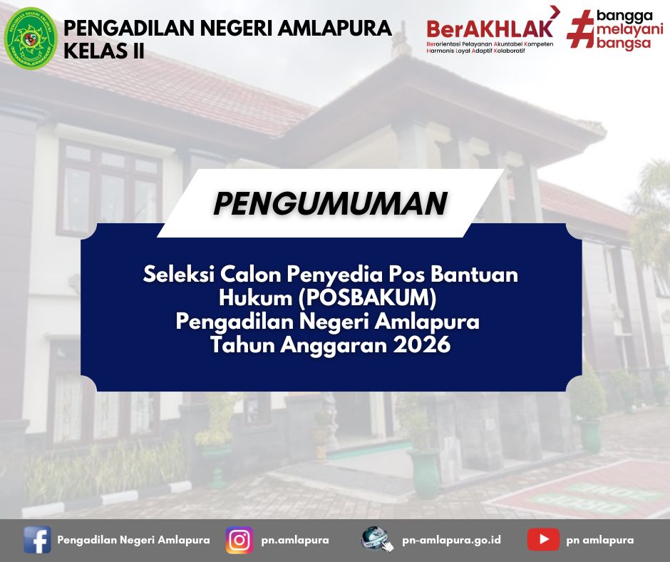 PENGUMUMAN SELEKSI CALON PENYEDIA POS BANTUAN HUKUM (POSBAKUM) PADA PENGADILAN NEGERI AMLAPURA